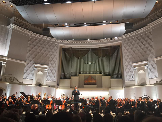 Обе открывшие сезон программы были посвящены XX веку. Все-таки не XXI — хоть в них и были две только что написанные партитуры: Ефрем Подгайц, известный, прежде всего, как автор добротной музыки для детей, подарил оркестру сочинение под названием «AGES» (это не английские «времена», а «Александр Гаук и Евгений Светланов», что в переводе на ноты будет «ля — соль — ми — ми-бемоль»), представляющее собой динамичную нарезку лихих оркестровых переполохов; а Геннадий Гладков, любимый страной за «Бременских музыкантов» и «Обыкновенное чудо», пересочинил прокофьевское фортепианное «Наваждение» в драйвовый опус для симфонического оркестра с электрогитарами, саксофонами, ударной установкой и шестью солирующими виолончелями.