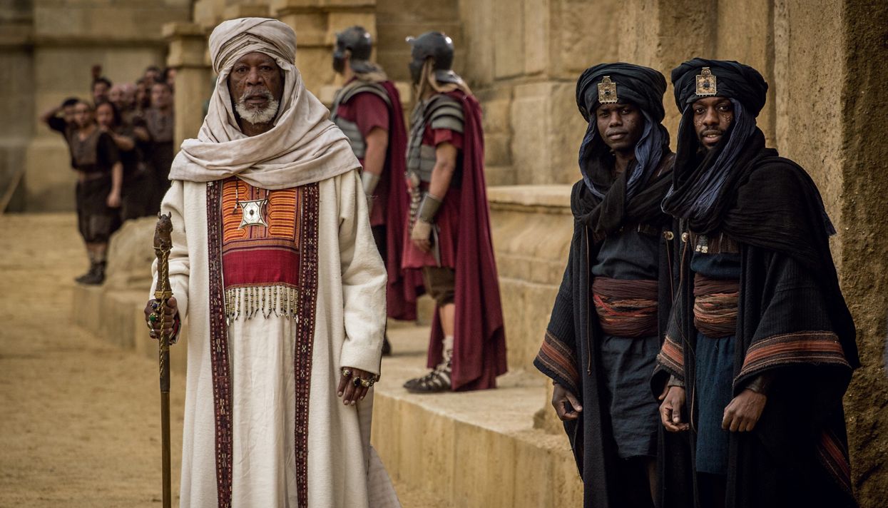 Актеры Джек Хьюстон (Бен-Гур) и Тоби Кеббелл (Мессала) отважно выполняют трюки вместо каскадеров, но их статуса недостаточно, чтобы заработать деньги в прокате. Морган Фриман в роли распорядителя боев на колесницах не может повторить фантастическую работу Оливера Рида в «Гладиаторе». Просто потому, что Рид на съемках отчаянно эпикурействовал и в итоге умер, а Фриман стараниями стилистов носит нелепые дреды, как у Вупи Голдберг. Возможно, в этой модернистской постановке ему бы больше подошла роль Бога. К слову, сына Бога здесь играет Родриго Санторо — самый слащавый Иисус в истории кино. К тому же, десять лет назад этот актер изображал пирсингованного полубога Ксеркса в другом пеплуме «300 спартанцев», и некоторых зрителей это окончательно настроит на веселый лад.