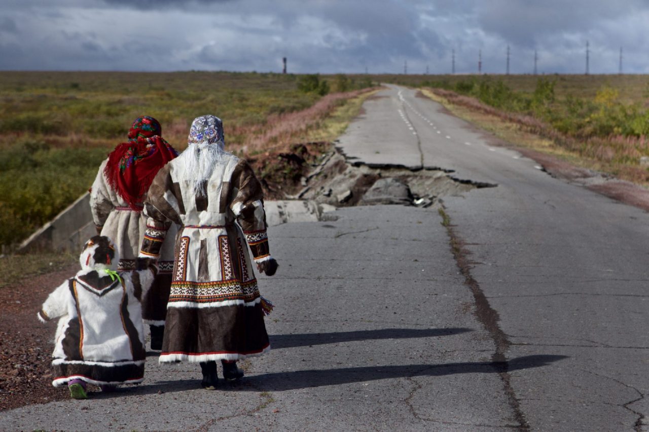 Ненецкая семья на разбитой дорогеФото: Stephen Nugent/Greenpeace