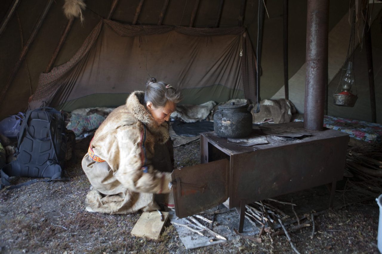 Ненка разводит огонь в чуме, чтобы вскипятить чайФото: Steve Morgan/Greenpeace