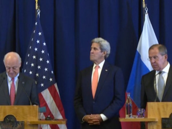 Стаффан де Мистура, Джон Керри и Сергей Лавров на пресс-конференции После 10 месяцев безуспешных попыток достигнуть политического разрешения конфликта в Сирии, который длится уже более пяти лет, Россия и США наконец смогли согласовать общую программу, которая должна запустить реализацию плана по прекращению огня — прелюдии к переходному режиму и последующей демократической процедуре выборов нового руководства страны. Что важно, Москва и Вашингтон смогли договориться по наиболее сложным вопросам, таким как разграничение территорий, контролируемых силами оппозиции и группировками, которые обе стороны признают «террористическими». Предыдущие договоренности, призванные остановить гражданскую войну в Сирии, не привели к успеху. Однако принятие новой «дорожной карты» претендует на то, чтобы стать поворотным моментом в урегулировании конфликта. Если все пойдет по плану, российская и американская авиация могут начать совместное выступление против «Исламского государства» (запрещено в России).