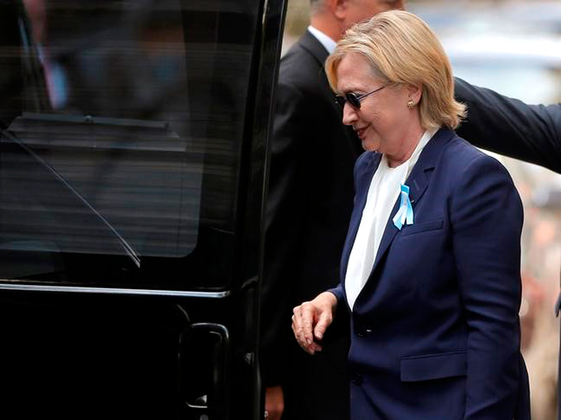 Накануне Хиллари Клинтон неожиданно прервала участие в официальной церемонии памяти жертв терактов 11 сентября 2001 года в Нью-Йорке из-за недомогания. Представители штаба позже заявили, что кандидат в президенты перегрелась на солнце.