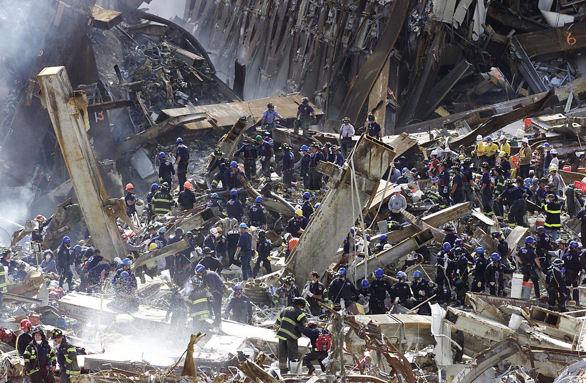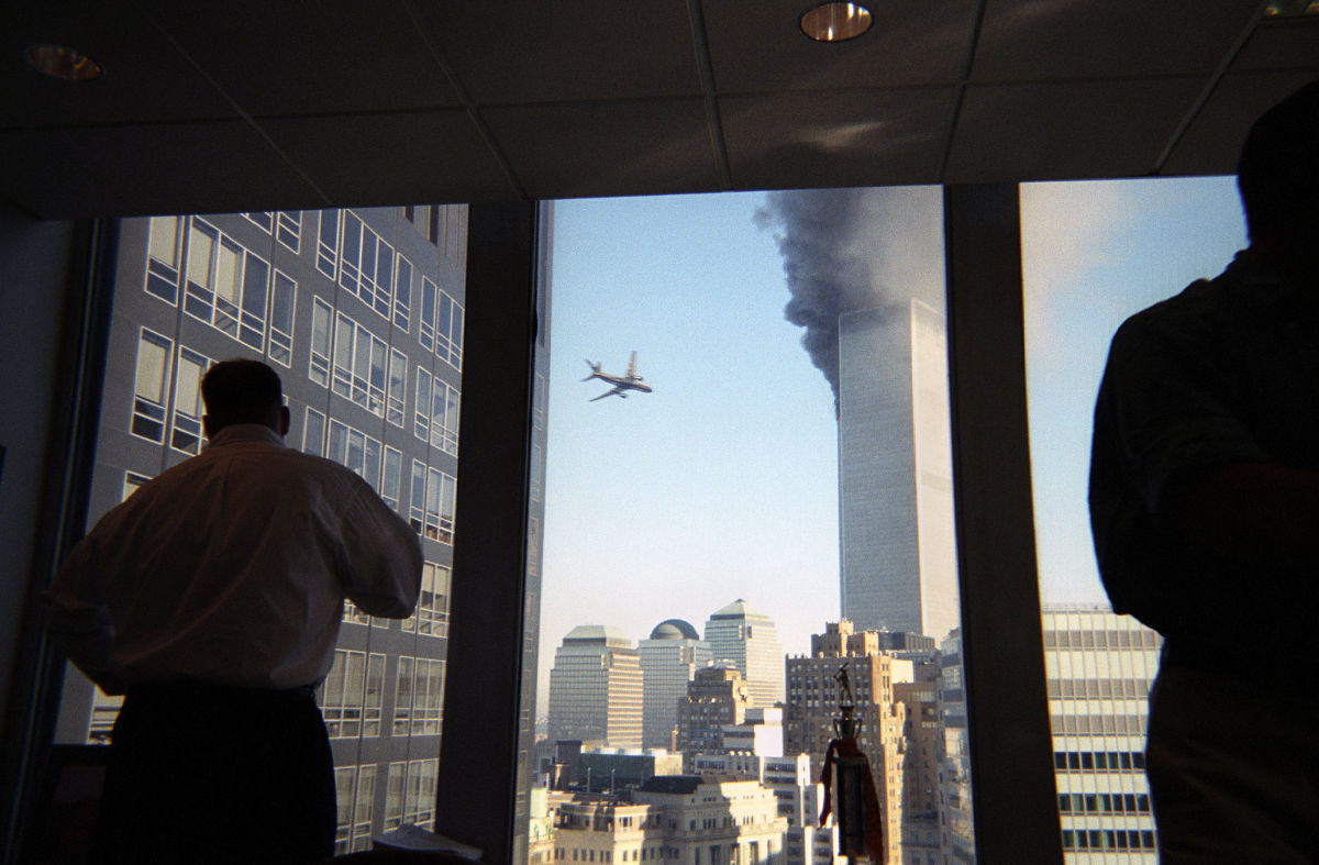 19 человек, из них пятнадцать — саудиты, один ливанец, один египтянин, один — из Объединенных Арабских Эмиратов, принадлежащие к террористической (и запрещенной в России) организации «Аль-Каида», основным финансистом которой был Осама Бен Ладен, ранним утром вторника, 11 сентября, угнали четыре «Боинга» двух разных американских авиакомпаний. Первый влетел в Северную башню Мирового торгового центра в нижнем Манхэттене в 8:46 утра между 93 и 99 этажами: 76 тыс. литров горючего взорвались и заживо сожгли сотни человек.
