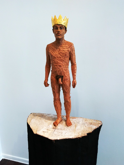 © Colta.ru Стефан Балкенхол. Обнаженный мужчина в золотой короне. 2015 Стефан Балкенхол немолод. Активно трудится он и сейчас, некоторые работы сделаны год назад. Но «следить за трендами» он прекратил, как видно, очень давно, раз продолжает спорить с оппонентами из далекого прошлого. Иногда такое нарочито наплевательское отношение к окружающей действительности для художника бывает даже продуктивным, особенно что касается трендов и моды. Претензий к нему нет, он никому ничем не обязан. Но тогда возникает вопрос к кураторам, нынешнему и будущим: можно ли поместить искусство Балкенхола в сегодняшний контекст, а не так, как сейчас, — по сути исключительно как феномен уже закончившейся истории?