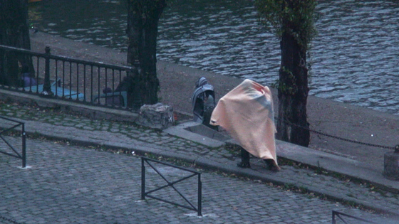 — Абсолютно. В этом и была идея. Поскольку я снимал дольше года примерно одно и то же, один и тот же вид из окна на станцию метро «Жорес», — естественно, были повторяющиеся элементы: деревья, некоторые машины, припаркованные всегда в одном и том же месте, мотороллеры, птицы. Поскольку эти элементы сохраняются в любой ситуации, с кем бы она ни произошла, — в моей истории или истории беженцев-афганцев по ту сторону окна, — было интересно включить некое сомнение в фильм, перерисовывая некоторые элементы.