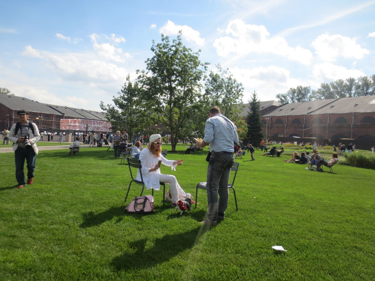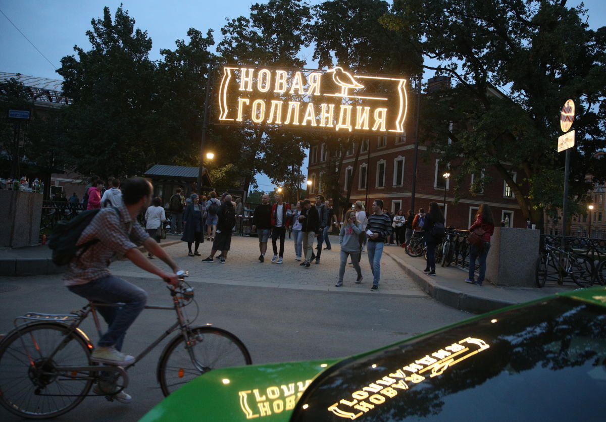 Открытие Новой Голландии — точнее, общественного пространства в центре острова — происходит уже во второй раз: с 2011-го по 2013 год каждое лето внутренний двор открывался для свободного и бесплатного доступа, эта идея принадлежала группе дизайнеров и кураторов, работавших с Музеем современного искусства «Гараж». Здесь можно было валяться на траве или загорать в шезлонгах, играть в мяч, читать книги в специально открытой общедоступной библиотеке, участвовать в разных мероприятиях.