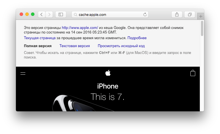 Этот способ сработает, только если в вашем браузере Google стоит поиском по умолчанию. Если нет — вводите «cache:» и адрес страницы в поисковой строке на google.com.