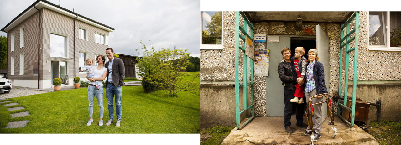 Слева: Амели с родителями на фоне своего дома в швейцарской деревнеСправа: Костя с родителями на фоне своего подъезда в городе НовомосковскеФото: Ольга Павлова