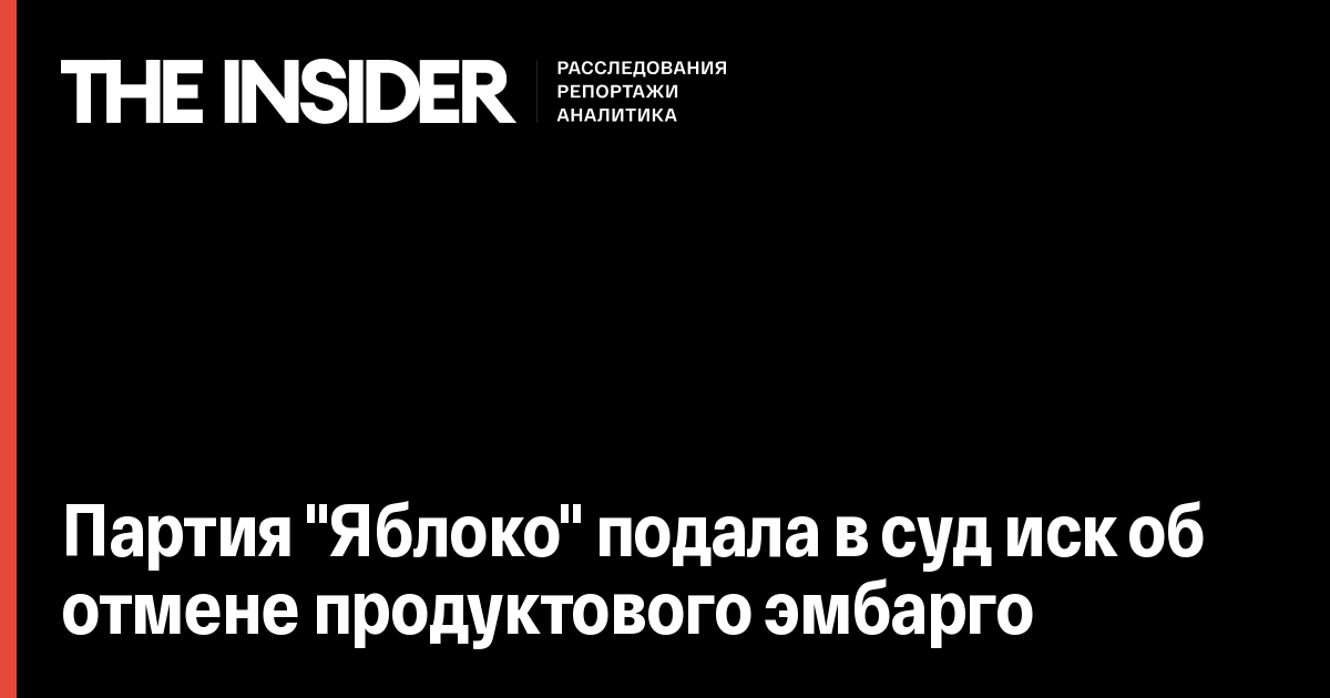 Члены партии «Яблоко» подали в Верховный суд России исковое заявление об отмене продуктового эмбарго. Об этом говорится в пресс-релизе партии.