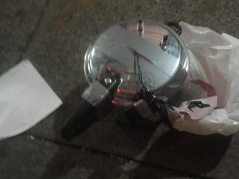 По данным RT, второе взрывное устройство представляет собой скороварку, из которой торчат провода. К ней подведен сотовый телефон, а вся эта конструкция упакована в пластиковый пакет.