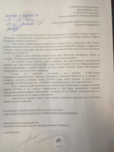 Как сообщил ранее журналистам председатель избирательной комиссии Краснодарского края Алексей Черненко, накануне выборов кандидат от ПАРНАСа, баллотировавшийся в Госдуму, был вычеркнут из бюллетеней в связи с решением Центральной избирательной комиссии.