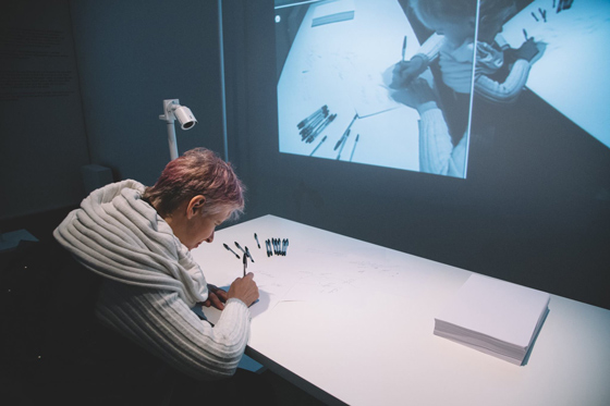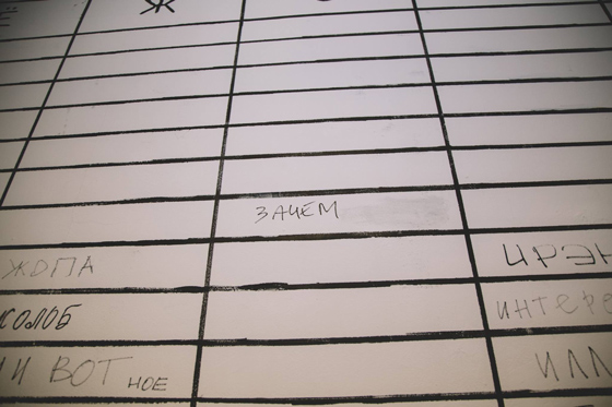 Дмитрий Волкострелов расширяет территорию своих экспериментов. На сей раз — в музейном пространстве. Его выставка «Повседневность. Простые действия» — это репетиция каких-то будущих ответов на элементарные и фундаментальные вопросы, неизменно — вчера-сегодня-завтра — интересующие современных художников. Продолжительность такой перформативной выставки, где посетители вступают или не вступают в контакт с авторским предложением — написать маркером самые употребляемые каждодневно слова, расписаться, заварить и выпить чай, завязать шнурки, набрать пин-код, вымыть руки, послушать в темной комнате запись шума на Тверском бульваре, — предполагает накопление уникального опыта. Вроде бы примитивного, но в этом контексте совершенно неизвестного. Опыта режиссера, куратора, зрителей и людей со стороны.