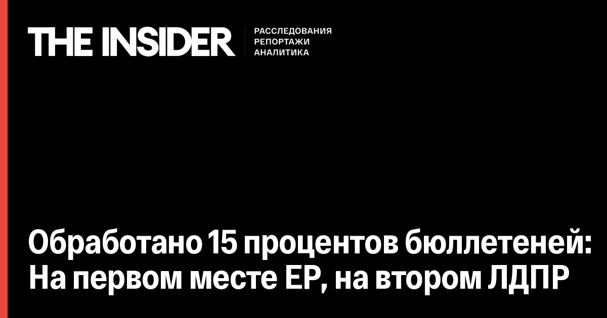 По итогам обработки 15 процентов бюллетеней, «Единая Россия» набрала почти половину голосов — 48,32 процента. Второе место занимает ЛДПР (16,25 процента), третье — КПРФ (15,8 процента), четвертое — «Справедливая Россия» (6,52 процента).