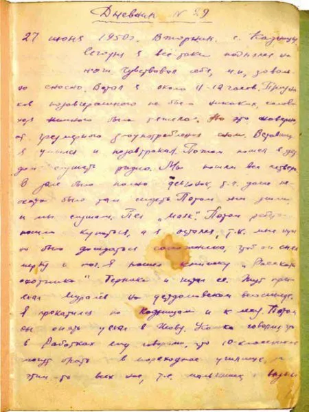 желающие приходят к нам, приносят с собой какое-нибудь устройство — планшет или ноутбук. Мы немножко рассказываем о дневнике, после чего даем каждому по три отсканированных листочка. Все минут за двадцать пять набирают свой фрагмент а после обсуждают прочитанное. Уже после занятия мы складываем все набранные фрагменты в один текст, сверяем его с рукописью и выкладываем на сайт. Так мы набрали один из самых интересных дневников, с которыми я работал, — анонимный дневник крестьянского парня 1932 года. Этот дневник небольшой, он состоит из двух частей: биографии и дневниковых записей за короткий период, когда парень жил и работал на агротехнической станции подсобным рабочим. Ему было 20 лет, он сирота, выходец из очень бедной крестьянской семьи. В конце концов он уехал из своего села, переехал сначала в Грозный, где несколько месяцев работал на нефтеперерабатывающем заводе и чувствовал себя одиноко, «словно сноп сена посреди озера нефти». Потом попал на станцию под Мичуринском, где и работал поденным рабочим. У меня ощущение, что у него были какие-то писательские амбиции, он явно оттачивал стиль для того, чтобы заняться писательской деятельностью. Это наивный фантастический текст, местами страшный.