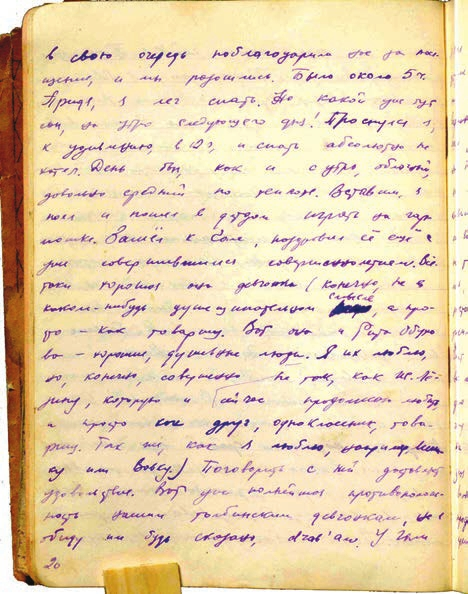 Два других дневника, которые мы подготовили в процессе этих лабораторий, пока не выложены у нас на сайте, потому что мы перестали обновлять его до открытия новой версии. Это дневники Михаила Презента (советского государственного деятеля, обитателя Кремля и конфидента Демьяна Бедного) и девушки, которую в 1946 году посадили на шесть лет «за шпионаж», а на самом деле за связь с иностранцем. Она жила в Архангельске и мечтала быть американской актрисой. И она встречалась в интерклубе с американским моряком. У нее был роман, родился ребенок от этого американца. Когда это было выгодно стране, когда нужно было развлекать иностранцев, таких девиц не трогали. А когда поставки по ленд-лизу прекратились, интерклубы прикрыли, и всех девиц, которые были близки к американским морякам, попересажали. И этот дневник стал доказательством ее виновности. Автор в 1990-е годы получила его обратно из ведомственного архива и отдала потом в «Мемориал», в котором уже три десятка лет создается мощнейший архив документов, связанных с государственным террором в СССР. Сейчас мы стали работать с документами из собрания «Мемориала», и этот дневник станет первой совместной публикацией.