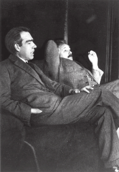 Как-то утром в мой кабинет зашел Нильс Бор и, помявшись, проговорил: «Вы такой умный…» Я рассмеялся (никакой робости или почтительности в его присутствии никто не испытывал) и ответил: «Понятно, чем могу быть полезен?» Бор попросил спуститься к нему в кабинет, чтобы спокойно побеседовать. В то время Бор занимал кабинет Эйнштейна, а тот перебрался в соседний маленький офис секретарши. Свой большой кабинет он недолюбливал и редко им пользовался. В кабинете Бор попросил меня сесть («Мне всегда нужна точка отсчета») и тут же засеменил вдоль стоявшего в центре овального стола. Потом остановился и попросил записать несколько фраз, пришедших ему в голову во время этой пробежки. Надо отметить, что при диктовке Бор никогда не договаривал фразы до конца. Он часто обрывал себя на каком-то слове, повторял его и так и эдак, крутил и вертел во все стороны, прикидывая, что должно за ним последовать. В тот раз таким словом оказалось имя Эйнштейна. Он бегал вокруг стола, повторяя: «Эйнштейн, Эйнштейн…» Случайному посетителю, не знакомому с привычками Бора, такое поведение показалось бы весьма странным. Потом он подошел к окну, уставился в него невидящим взглядом и продолжал время от времени повторять: «Эйнштейн, Эйнштейн…»