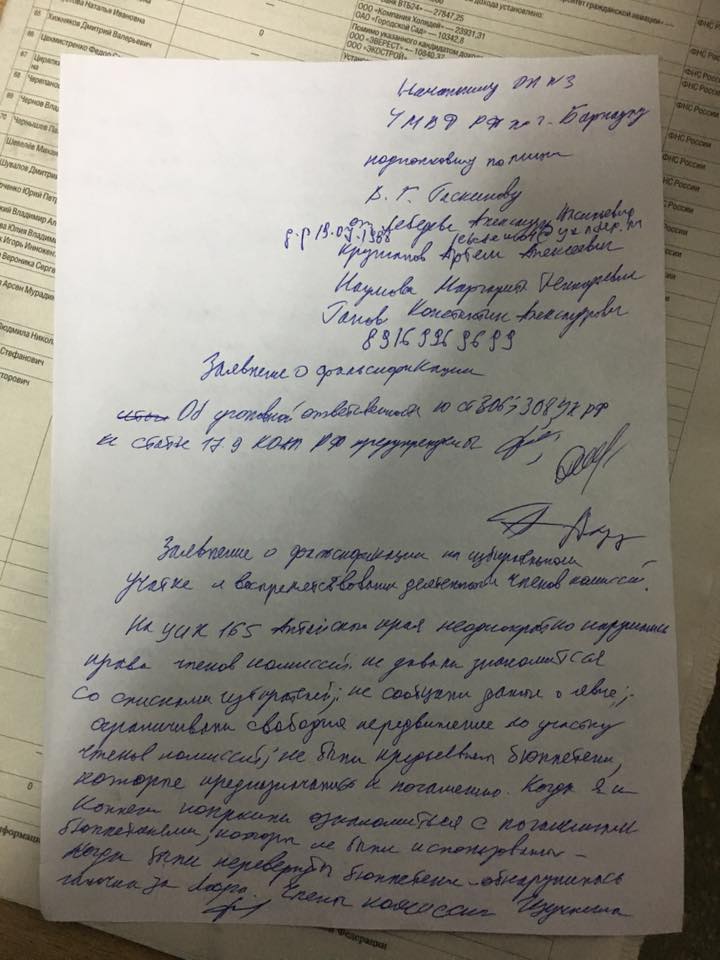 Заявление о фальсификации на избирательном участке в Барнауле. Фото: Александр Лебедев В воскресенье припугнуть алтайских организаторов каруселей даже была вынуждена Элла Памфилова, она пригрозила отменить результаты выборов. Сейчас, правда, об отмене результатов выборов, вроде бы, уже не говорят.