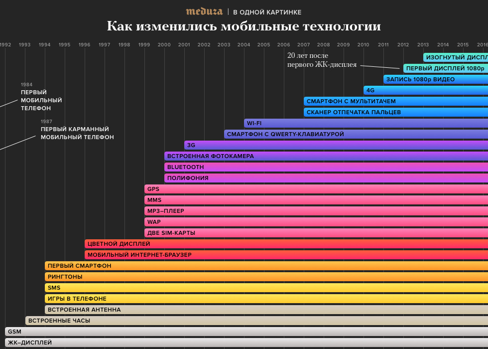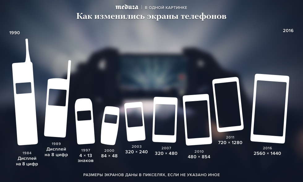 Через неделю после начала продаж двух новых смартфонов LeEco — LeMax 2 и Le 2 — «Медуза» вспоминает, как менялись телефоны за последние 20 лет и каких успехов добились производители, соревнуясь друг с другом в мощности фотокамер, размере экрана и технологической «начинке».