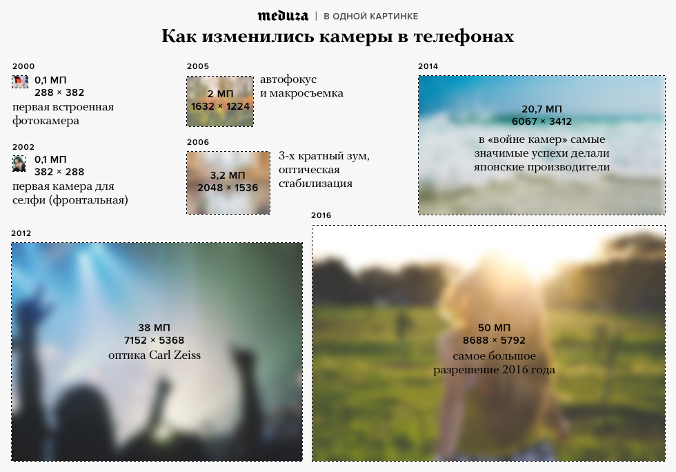Благодаря «войне камер» количество мегапикселей уже не имеет значения: телефоны давно не уступают фотоаппаратам и исправно документируют реальность — на первом снимке, отправленном с мобильного телефона, была запечатлена новорожденная девочка. Теперь ей должно быть почти 20 лет.