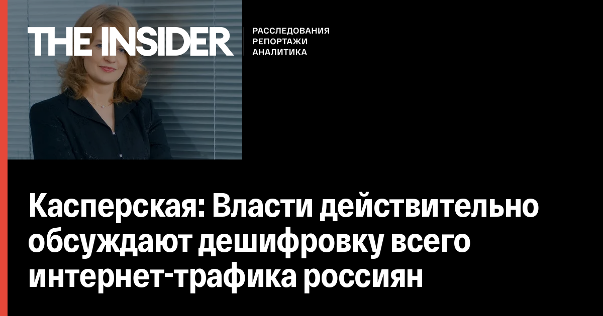 Касперская: Власти действительно обсуждают дешифровку всего интернет-трафика россиян