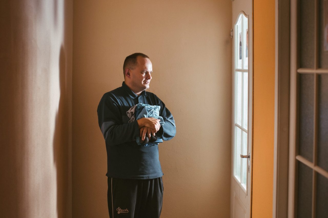Саша в коридоре тренировочной квартиры перед входом в свою комнату. Собирается отнести белье, которое только что погладил сам. На двери каждой спальни в квартире фотографии подопечных, которые в ней живутФото: Екатерина Резвая для ТД Один курс в тренировочной квартире длится пять месяцев, после у ребят перерыв, они возвращаются домой, где закрепляют полученные навыки с супервизией тьюторов, которые работают с ребятами в семье. Такой курс надо пройти несколько раз, чтобы закрепить полученные навыки. В итоге человек должен научиться жить самостоятельно с минимальным сопровождением тьютора.