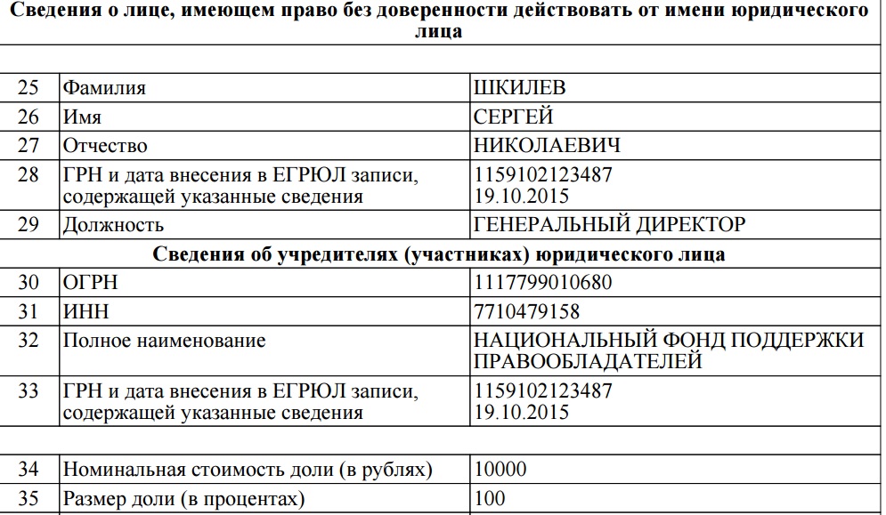 Предприятие учредил российский Национальный фонд поддержки правообладателей – благотворительный фонд, который оказывает поддержку в сфере гуманитарного образования. Фонд, в свою очередь, принадлежит общественным организациям «Российский союз правообладателей» и «Российское авторское право». Обе организации возглавляет целый десант известных советских и российских артистов.