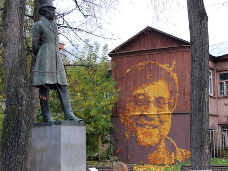 В Перми уличный художник Александр Жунев, получивший широкую известность после скандала вокруг его граффити "Гагарин. Распятие", выложил из осенних кленовых листьев на стене деревянного дома в сквере Пушкина портрет лидера группы ДДТ Юрия Шевчука, сообщает "Рифей-Пермь".