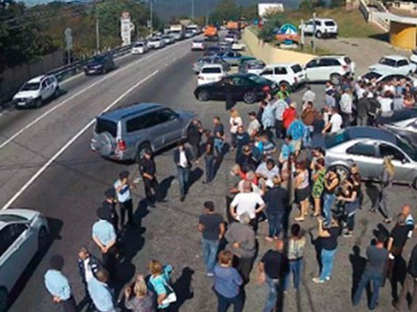 Несколько десятков автолюбителей и жителей поселка Сергей-Поле в Дагомысском районе Сочи протестуют против организации нового автомобильного движения на участке федеральной трассы А-147 Сочи — Дагомыс.