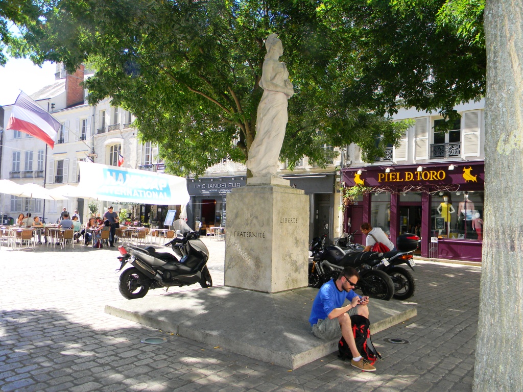 Но никаких следов этих важнейших исторических событий мы в Орлеане не обнаружили. Даже Орлеанский университет, который в своё время окончили такие знаменитости, как Мольер и Кальвин, находится где-то за городом. Видимо, образ Жанны Д,Арк оказался настолько ярким, что затмил всё остальное. Вот разве что скромная статуя Свободы-Равенства-Братства напоминает ещё и о событиях Великой французской революции.