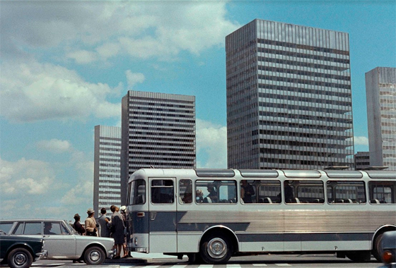 Комедия Александра Медведкина посвящена сталинскому плану реконструкции Москвы: на экране появляются циклопические дома, гигантские проспекты и площади, и, наконец, Дом Советов. А Жак Тати для съемок своего «Времени развлечений» построил макет Парижа, в котором небоскребы заменили старинные здания.