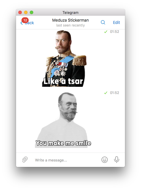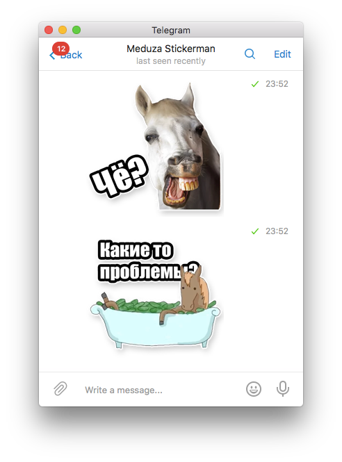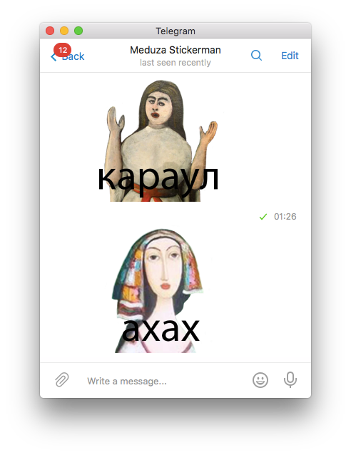 В конце сентября мы выбрали 100 отличных наборов стикеров для Telegram, которые «Медузе» посоветовали читатели. Впрочем, прислали их нам так много, что пришлось делать вторую часть: из тех, что не попали в первую серию, мы выбрали еще 30 наборов — самых странных. Не удивляйтесь!