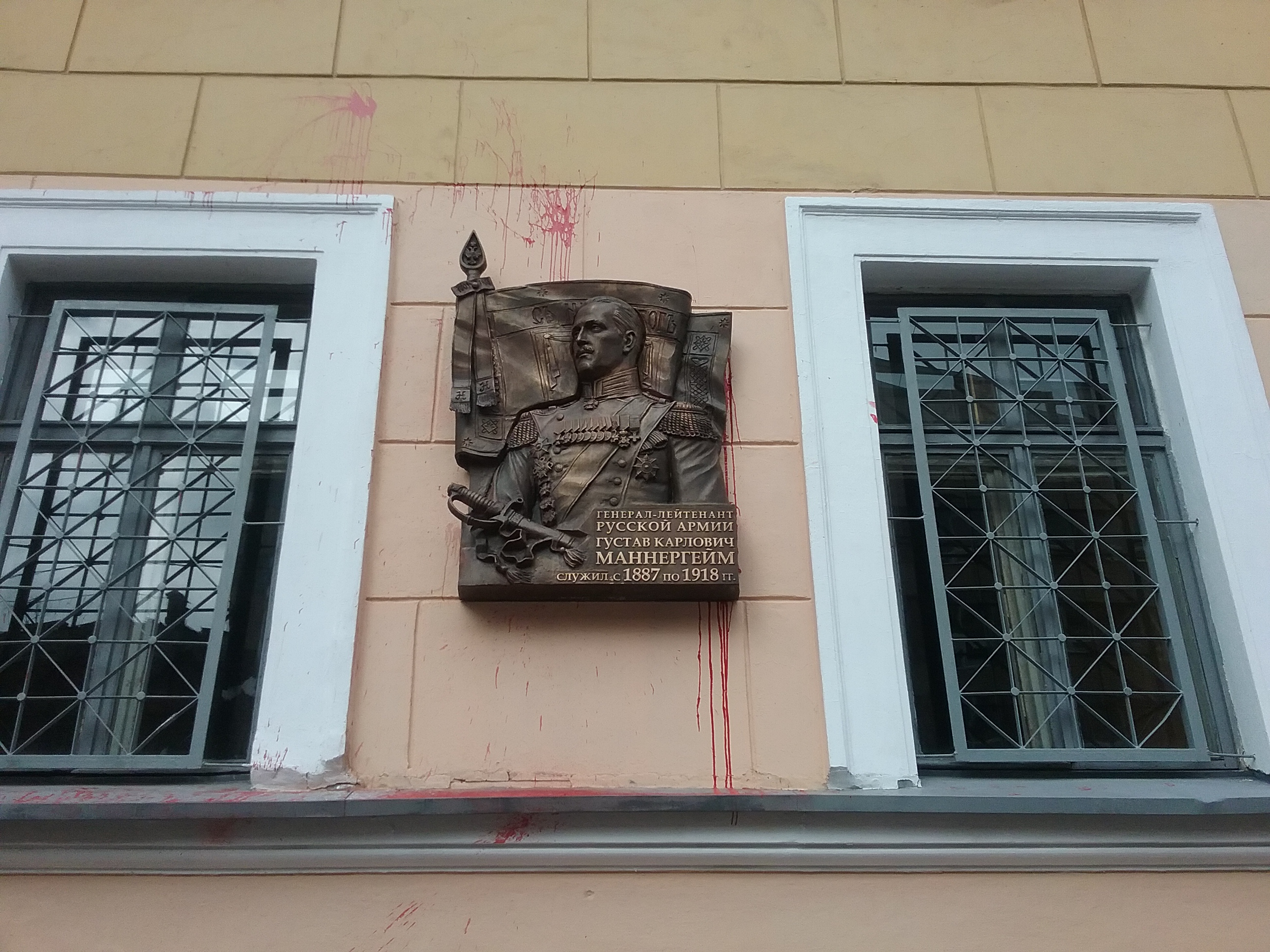 В Петербурге снова повредили мемориальную доску Маннергейму