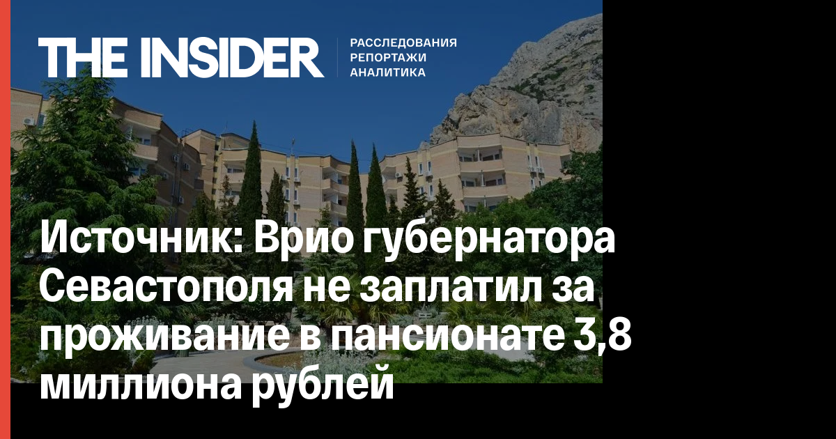 «Поступило заявление от руководства пансионата. В нем, в частности, сообщается, что с момента назначения 28 июля на пост губернатора города Овсянников, его семья и члены его команды заселились в пансионат «Изумруд», в котором воспользовались услугами на почти 3,8 млн рублей. Эта сумма оплачена не была», — сказал источник.