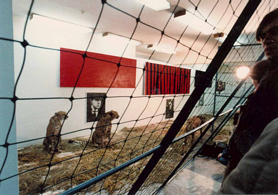 © osmopolis.ru Анатолий Осмоловский. «Леопарды врываются в храм», инсталляция, 1992 Жиляев: Мне кажется, что интерпретацию музея как нейтрализующей институции можно уподобить тому, что называется буржуазной революцией в марксизме. Я абсолютно не верю в магию некой «реальной / не нейтральной жизни», которая существует за пределами музея, мастерской, где произведение искусства обладает истинной силой. И, как мне кажется, музей даже в своем «нейтрализующем», так скажем, буржуазном формате выступает как очень мощный разрушитель, в нем очень силен нигилистический импульс. Ведь это именно музей вырывает искусство из церкви, из уютной «буржуазной» повседневности. Но говорить о музее на таком уровне сегодня недостаточно.