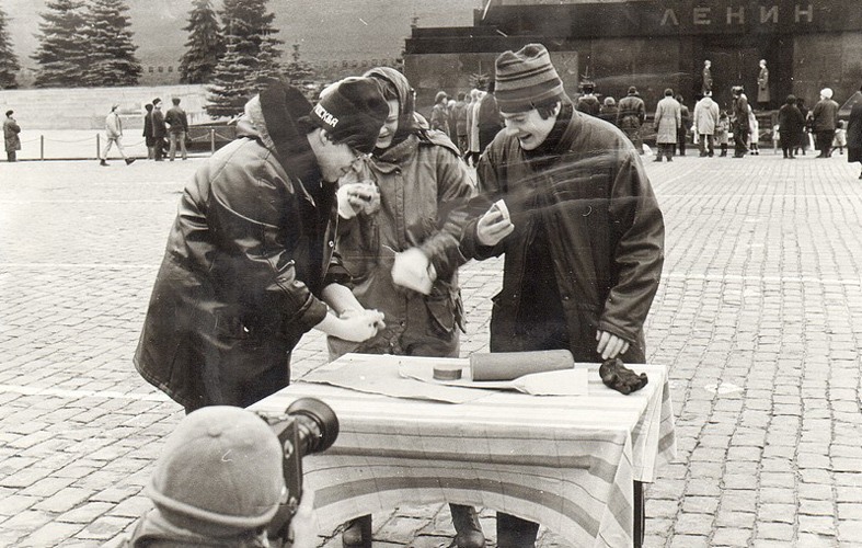 И вот, когда произошла первая реформа (это было 1 января 1991 года), уже следующий поход в ДК окончился ничем. Нам сказали: вы можете делать все что угодно, но только при одном условии — стопроцентная предоплата. Раньше мы просто договаривались, что разделим все пополам, гарантируем, что придет народ, и т.д. После реформы все независимые точки, которые не были захвачены художниками андеграунда, требовали предоплаты, а мы ее не могли предоставить. И поэтому наше отношение изменилось: ах вы так? Тогда мы выйдем на улицы и будем там зажигать! В результате была продумана целая серия акций. 18 апреля была сделана эта акция на Красной площади, а через три месяца рухнул Советский Союз, и мы были, наверное, последними, кого ругали на партийном съезде, говорили: до чего мы докатились, надо закручивать гайки!