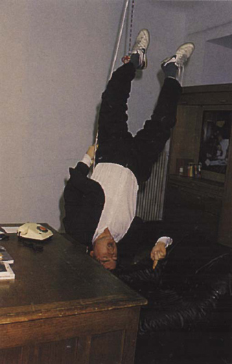 © osmopolis.ru Э.Т.И. и «ЗАиБИ». «Указательный Палец», акция, 1991 г. Что представляла собой эта коллективная деятельность? Прежде всего, конечно, бесконечное обсуждение каких-то теоретических книг, которые, надо сказать, при советской власти, уже начиная где-то с 1985 года, пошли нескончаемой чередой. Например, сборник манифестов литературных направлений, начиная от сюрреализма и кончая современными поэтами-конкретистами, «Называть вещи своими именами». Или «Избранное» Ролана Барта, который очень сильно повлиял, по крайней мере, на мое сознание того времени. И вот эти обсуждения в конце концов превращались в разные эксперименты над собственным сознанием и жизнью. Это чрезвычайно важно для художника. Существует стороннее представление, что в этом принимают участие наркотики, но мы наркотиками не особенно баловались. В основном мы использовали всякие внутренние ресурсы организма. Самый действенный — долгое время не спать, к примеру — трое суток. Уже со вторых суток начинаются некоторые проблемы. Чтобы это работало, ты должен быть с кем-то, один просто заснешь. И одновременно с этим состоянием «не сна», особенно на третьи сутки, очень здорово смотреть какие-нибудь фильмы на видеомагнитофоне, желательно длительные. Мы, например, очень любили фильмы Сокурова, в то время они как раз только-только стали выходить. И создается очень интересное состояние уже на третьи сутки, когда ты спишь, но на самом деле ты сам не замечаешь этого. То есть сон длится приблизительно 10—15 минут. Если ты знаешь, Аристотель приучил себя таким образом жить, что он спал три часа в сутки. Он засыпал с медным шаром в руке, и в момент, когда он засыпал, у него расслаблялись мускулы, этот шар падал на блюдо и его будил.