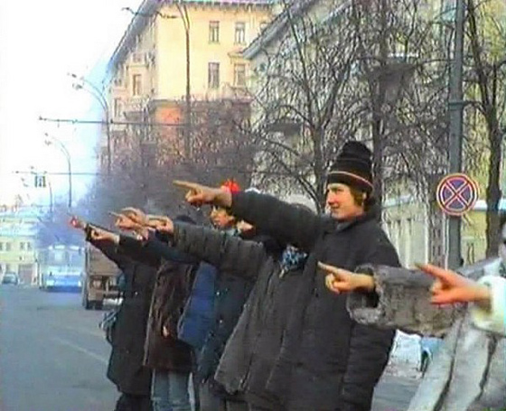 © osmopolis.ru Анатолий Осмоловский. Перформанс «Какой хотят видеть Россию на Западе», 1996 Осмоловский: Очевидно, что здесь нужно. Для организации подобного типа музея и даже создания музейных условий нужно, чтобы художник в России взял власть в свои руки. Перспектива сейчас достаточно отдаленная, может быть, даже я не доживу до этого момента. Потому что если какие-то события, народные волнения произойдут в ближайшие год-два, конечно, ничем хорошим они не закончатся, это совершенно очевидно. Но если они произойдут не через год-два, а, скажем, через 15 лет, то за это время настоится другая культура, собственно говоря, необходимая для России. Модернизационная культура, которая в 1990-е годы попыталась что-то сделать, была провалом — по гамбургскому счету. Это было связано с Михаилом Горбачевым, он должен был модернизировать страну, но не смог, все остальное — это уже результаты, попытка из этого провала как-то выскочить, придумать что-то по случаю. Но повторяю: если будет настаиваться модернизационная культура, то через 10—12 лет она приобретет свой очень веский голос. И тогда как раз художники как универсальные интеллектуалы могут сыграть очень позитивную роль.