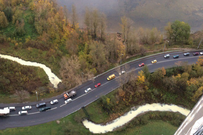 Приток Невы окрасился в белый цвет, пишут в соцсетях