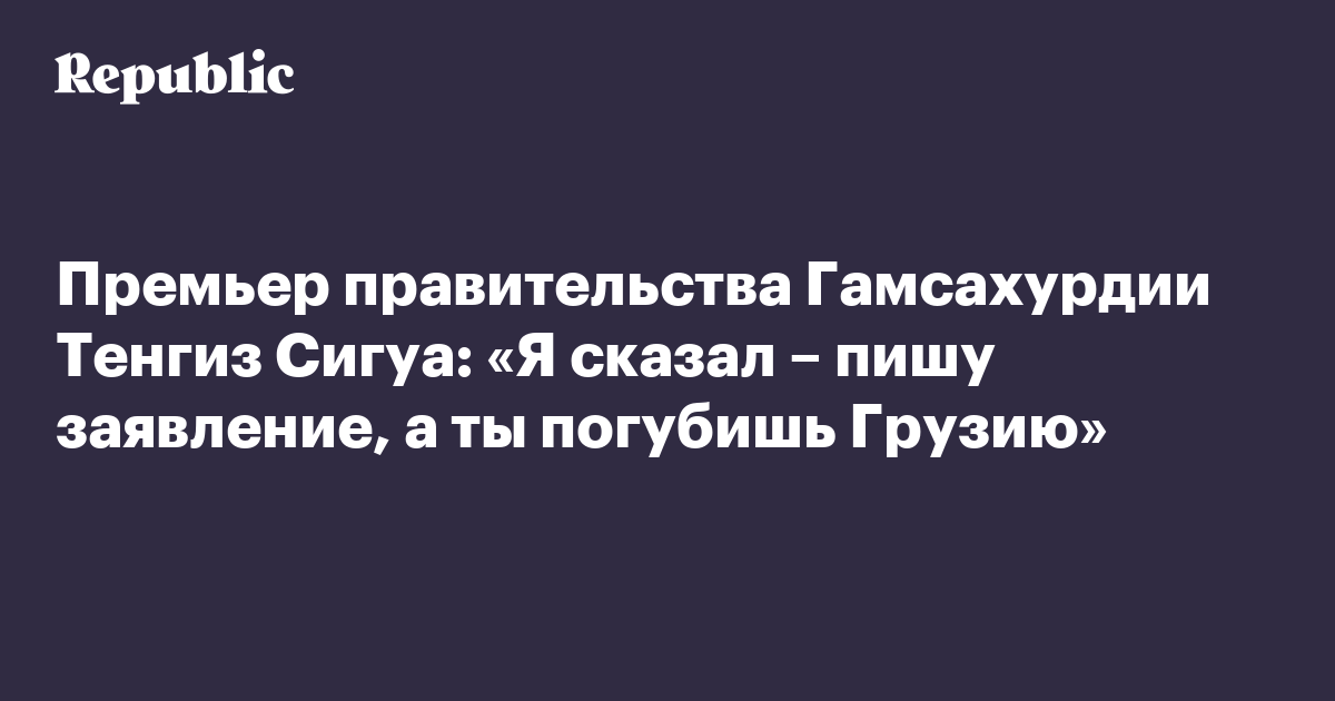 Премьер правительства Гамсахурдии Тенгиз Сигуа: «Я сказал – пишу заявление, а ты погубишь Грузию»