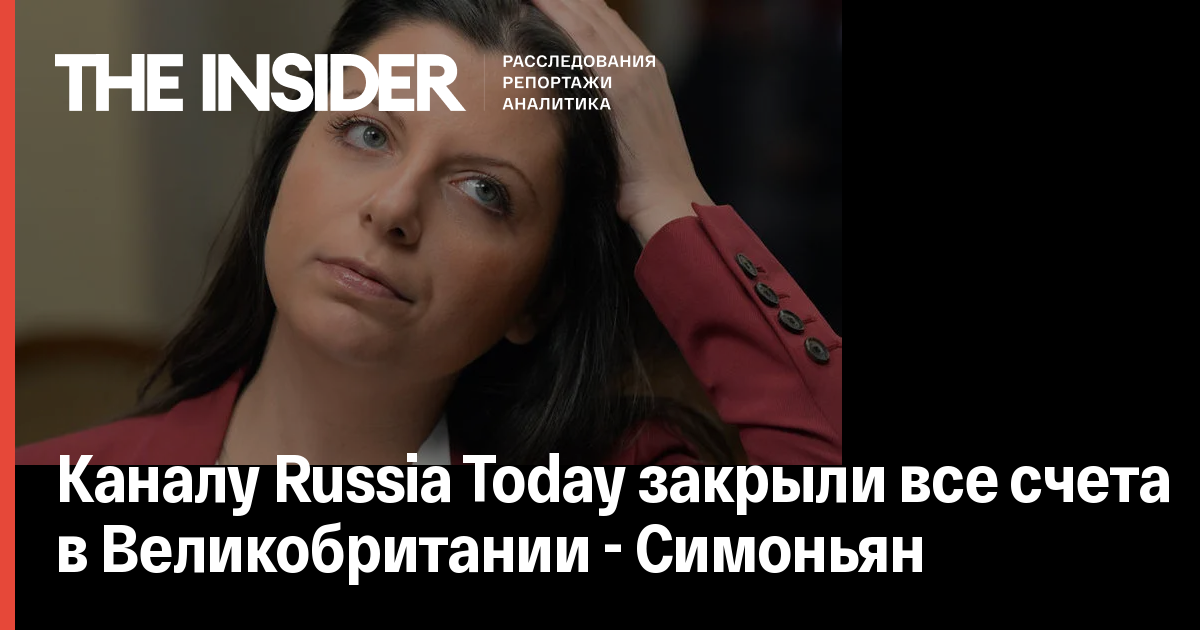 Каналу Russia Today закрыли все счета в Великобритании - Симоньян
