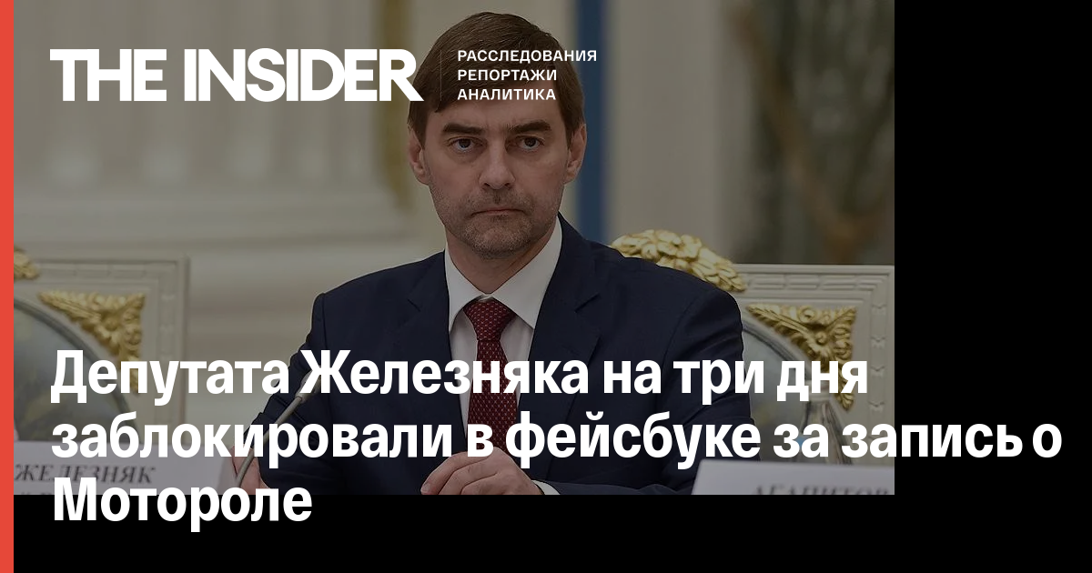 Аккаунт депутата Госдумы от «Единой России» Сергея Железняка заблокирован в фейсбуке на три дня из-за записи о гибели главаря ополченцев ДНР Арсения Павлова, более известного под позывным Моторола. Об этом сообщила на своей странице помощница Железняка Натэлла Стародубцева.