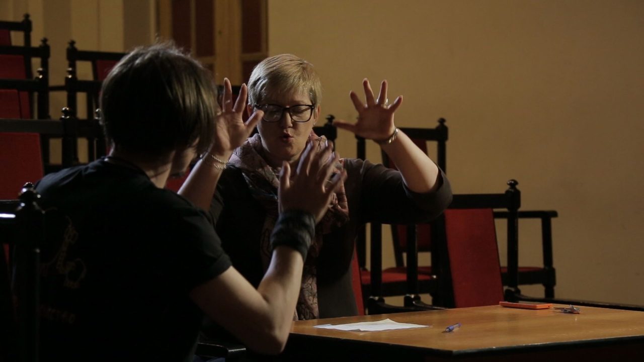 В международный день глухих в Москве состоялось несколько мероприятий, посвященных неслышащим, людям, чей опыт трудно себе представить, если ты слышишь. Кинопоказ, спектакль, выставка. Для искусства естественно делать скрытое видимым и пытаться установиться диалог с теми, с кем обычно даже не пытаются говорить.