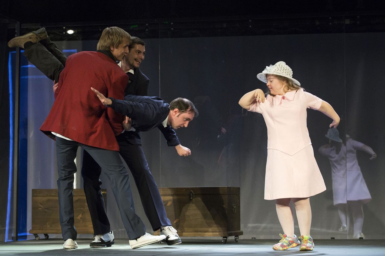 И команда «События» достигает этого: способ работы с особыми артистами, выбранный Михаилом Фейгиным, снимает этическую двусмысленность, неизбежную в ситуации, когда «условно здоровые смотрят на игру Других». Несмотря на то, что особенности артистов работают в том числе на комическую сторону постановки, зрители не оказываются в привилегированном положении. Им явлен странный, работающий по немного иным законам мир, внутри которого персонажи просто не могут существовать иначе.