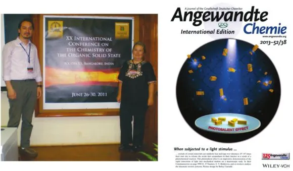 Фотохемомеханические эффекты в молекулярных кристаллах — упругий изгиб кристаллов в результате протекания в них обратимых фотохимических реакций — впервые были описаны именно российскими учеными в 1980-е годы: практически одновременно и независимо в Горьком (Абакумовым и Неводчиковым), Новосибирске (автором данной заметки, Сидельниковым и Чупахиным) и Новокузнецке (Ивановым и Урбаном). Хотя мы и наши коллеги из других городов предложили использовать данный эффект в сенсорах и фотометрах, на которые были получены авторские свидетельства на изобретения, не то что ажиотажа, но и просто сколько-нибудь заметного интереса в нашей стране эти работы не вызвали.
