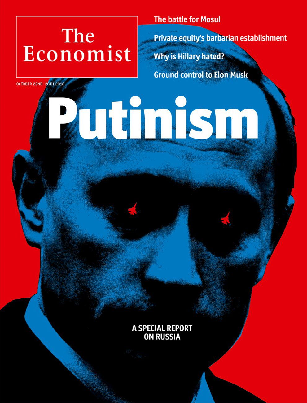 Россия в последнее время регулярно появляется в заголовках зарубежной прессы — то в связи с выборами в США (на исход которых Кремль, по некоторым данным, пытается повлиять с помощью хакерских атак), то из-за конфликта в Сирии, где в октябре шли особенно кровавые бои за Алеппо. Не сговариваясь, сразу четыре ведущих политических еженедельника — три британских и один американский — изобразили Владимира Путина на обложках своих новых номеров. Совокупно они ярко показывают, какова сегодня международная репутация президента России.