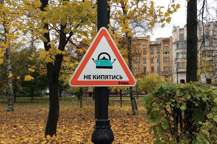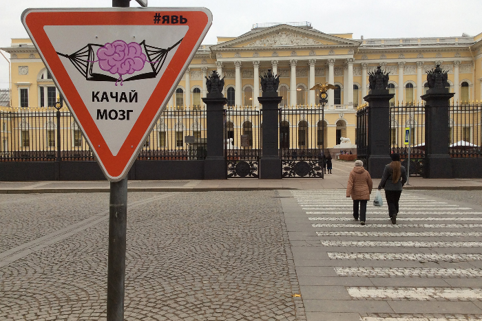 В Петербурге развесили таблички «качай мозг» и «не кипятись»