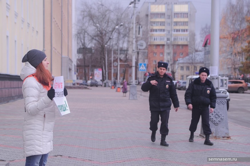 — Я вышла к зданию главы Коми. Простояла 15 минут. Потом подошел какой-то мужчина и сказал, что митинги [на Стефановской площади] запрещены. Он вызвал полицию. Приехал автозак, куда меня и посадили. В отделении у меня изъяли плакат, составили протокол и предложили ждать смс от суда, — сказала руководитель «Экологов Коми».
