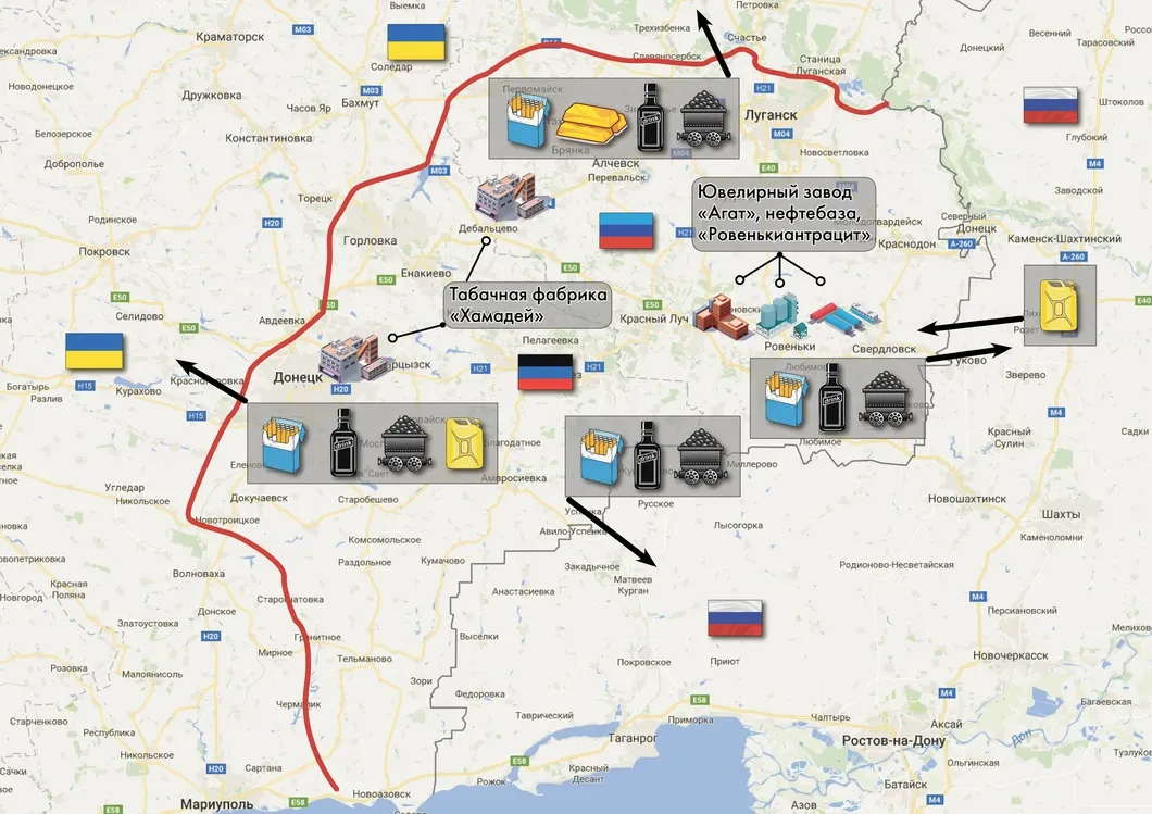Бенефициарами выступают политики, олигархи и воры в законе. Уголь, золото, бензин и табак. Вот за что воюют на востоке Украины