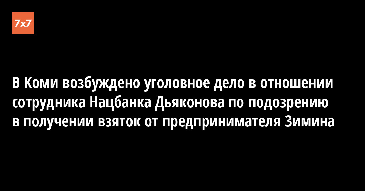 В Коми возбуждено уголовное дело в отношении сотрудника Нацбанка Дьяконова по подозрению в получении взяток от предпринимателя Зимина