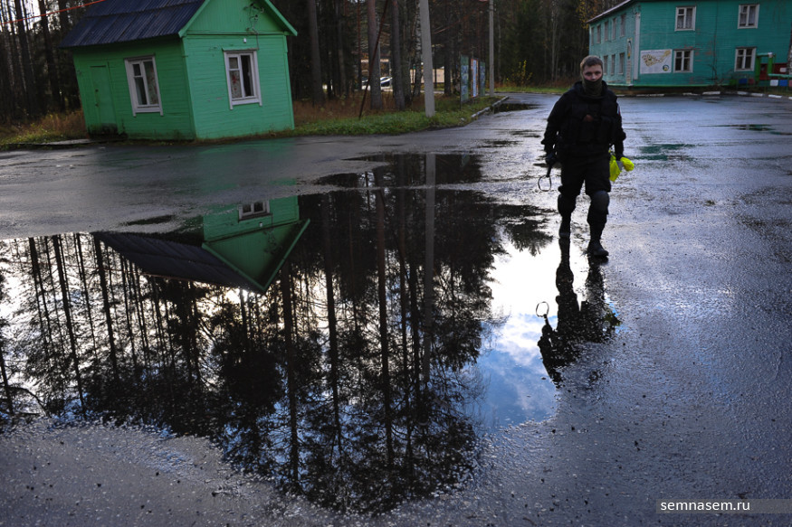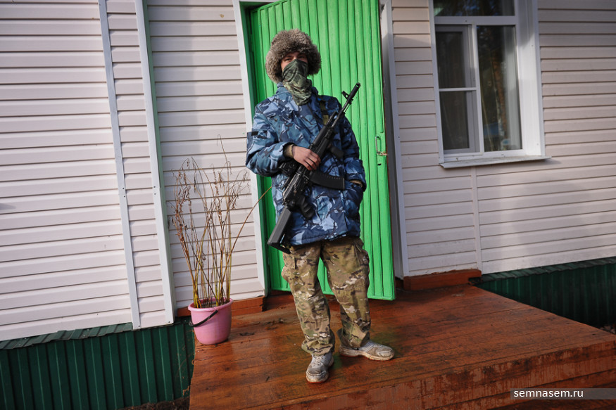 — Пистолет верни! — один из страйкболистов просит девочку положить пистолет, но она его не слушает, поэтому он повышает голос. — Пистолет верни! Одна девочка в Москве на соревнованиях сделала так [заглядывает в дуло]. А там был патрон. У нас их нет, но один раз в год и палка стреляет.